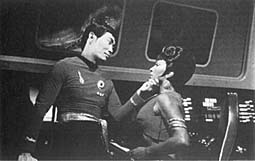 Mycket bra avsnitt. Uhura blottar sin vältränade mage. Kirk, Bones, Uhura och Scotty hamnar i en spegeldimension där Starflet verkar bete sig som Klingons. Alla på Enterprise intrigerar mot varann. Innan de återvänder övertalar Kirk den "onda" Spock att jobba för fred och ta över skeppet över den onda Kirk.